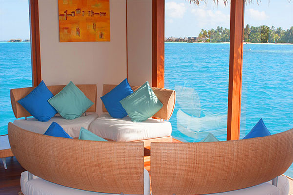 바다가 보이는 모던하고 포근한 인테리어의 거실과 다양한 구비시설을 즐기실 수 있습니다.